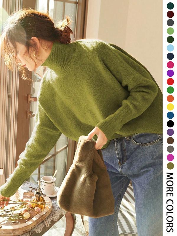 Autumn Winter Women's Sweater, High Neck Loose Casual French Style Knitwear, Elegant Simple Solid Color Pullover, Long Sleeve Knit Top