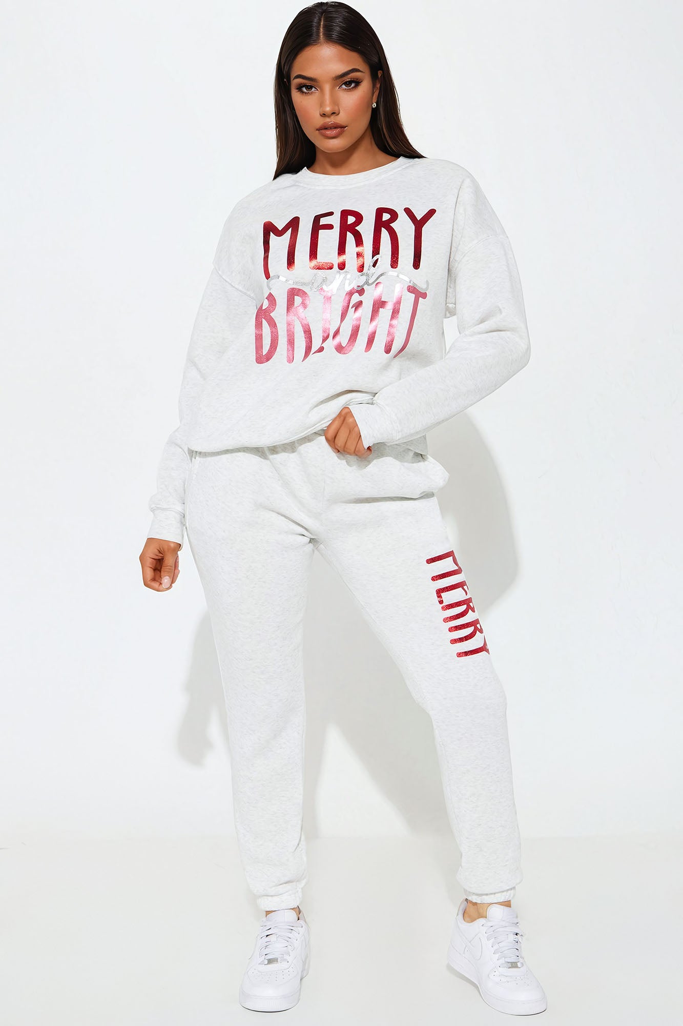 Christmas Spirit Fleece Pant Set - Heather Grey