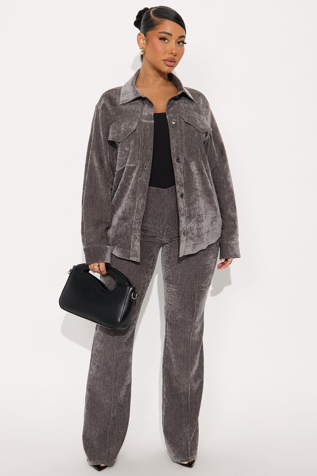 Corrina Velvet Shacket Pant Set - Black