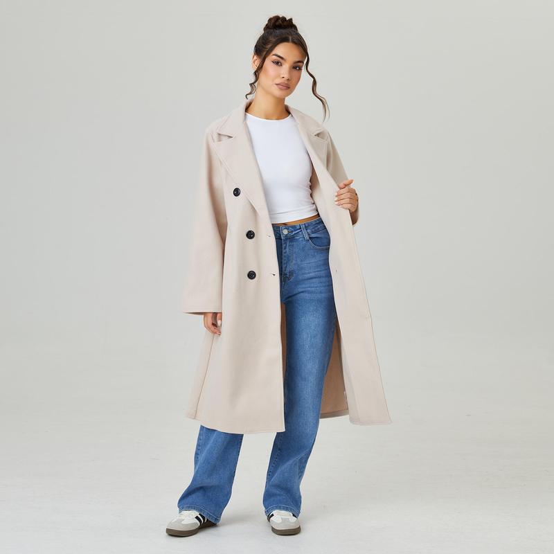 ·Details: Long sleeves, Double-breasted, Detachable waist belt, Functional side pockets, Notch lapel, With lined