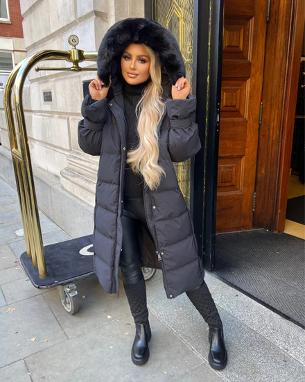 Keke Long Quilted Faux Fur Hood Coat