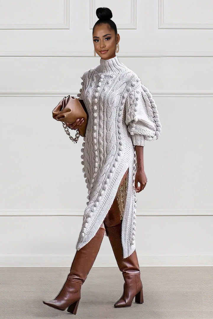 Knit Turtleneck Sweater Long Bell Sleeve Slit Midi Dresses