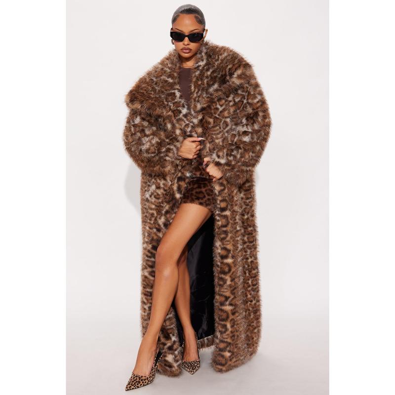 Simona Leopard Long Faux Fur Coat - Leopard