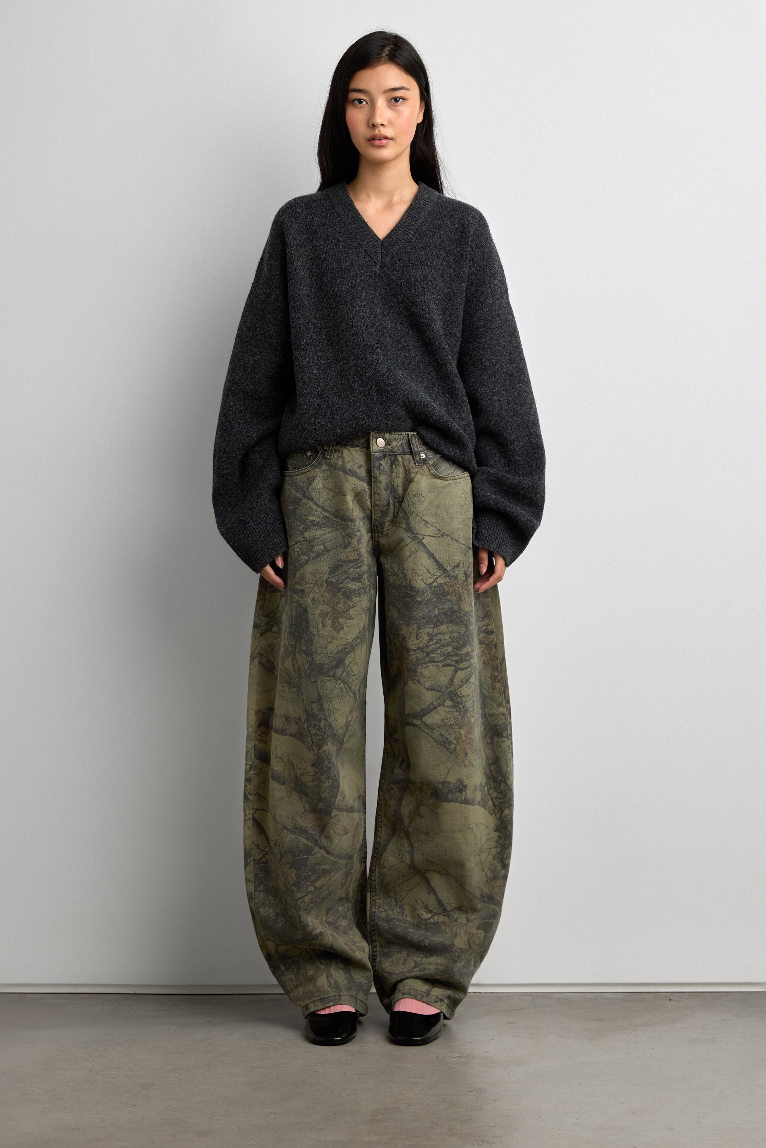 This V-neck sweater is made in a relaxed fit and has touches of wool for added warmth. It has ribbed trims and dropped shoulders for easy layering.