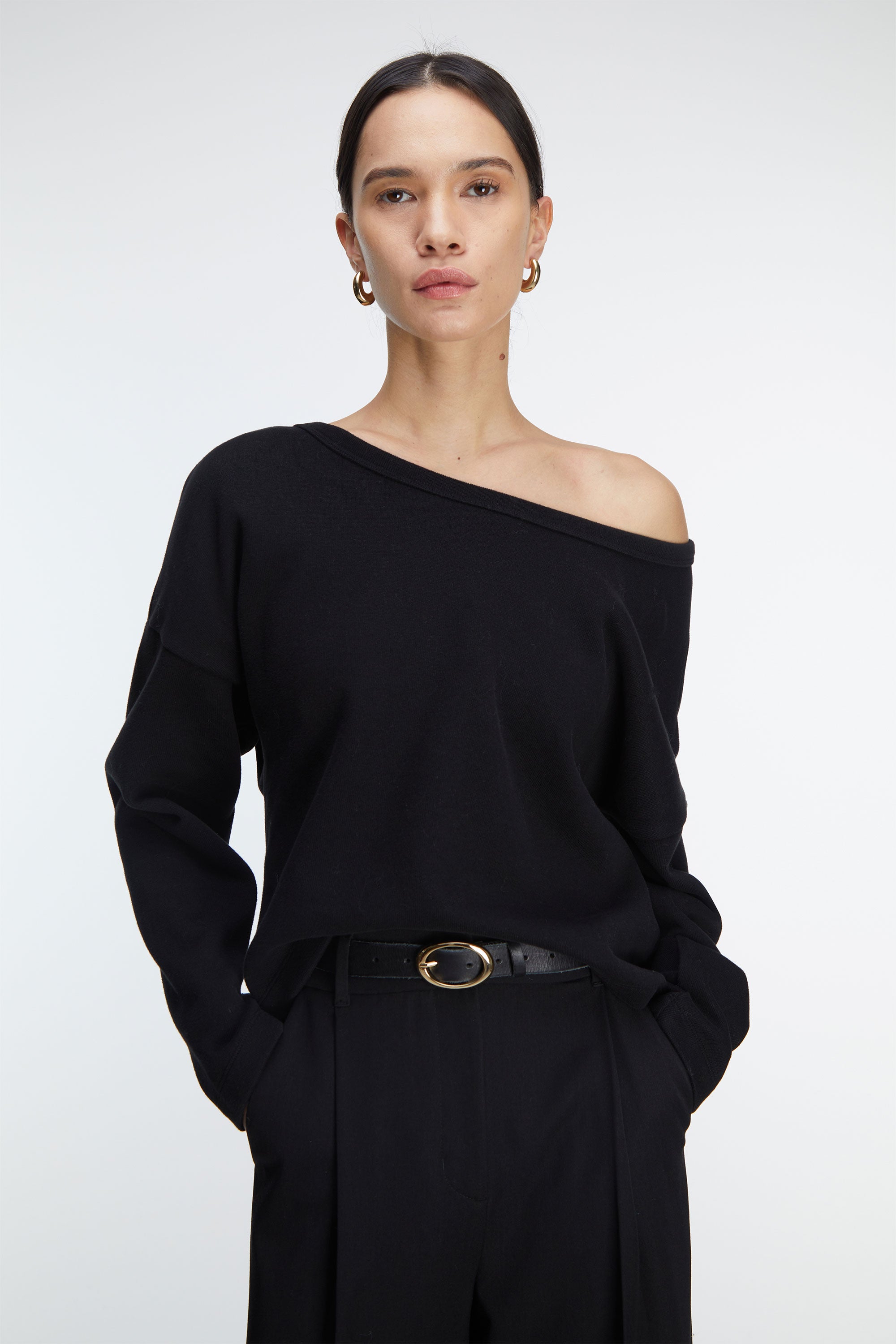 This wide neckline cotton blend top is perfect for layering this season. It's made in a relaxed fit and has dropped shoulders. Wear yours over a racerback tank and jeans.