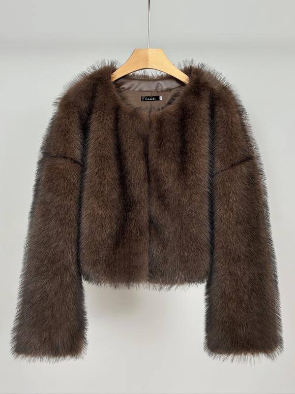 Women's Solid Color Faux Fur Jacket, Casual Long Sleeve Open Front Outerwear for Fall & Winter, Women's Clothing for Daily Wear, Coats, Womenswear